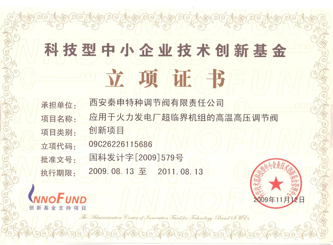 我公司《應用于(yú)火電廠超臨界機(jī)組的高溫高壓調(diào)節🏃🏻♂️閥》項目🆚,于二〇〇九(jiǔ)年底榮獲國家科(kē)技部技術創新基(ji)金的重點支持,獲(huò)得了近百萬元資(zī)金的無償資助。